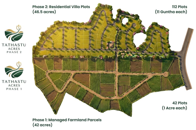 Tathastu Acres is a purpose-designed mango and mixed-agriculture estate. Developed for high-quality Alphonso production, cashew and areca cultivation, and value-added processing, the project is nestled in the lush landscapes of Kuvale, Kankavali, Sindhudurg Dist.